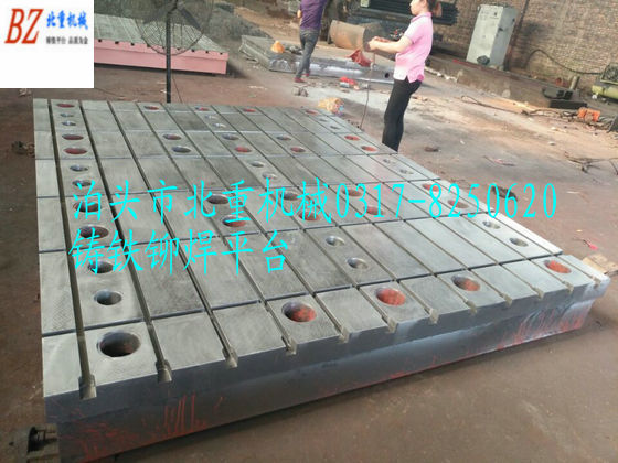 鉚焊平臺,鑄鐵鉚焊平臺,大型鉚焊平板泊頭北重性價比高.鑄鐵鉚焊平臺是鉚焊工作的基礎工作臺.為了滿足鉚焊工藝需求,鑄鐵平臺工作面加工縱向或橫向T型槽,適當位置加工圓孔,鉚焊平臺采用HT200-300灰鐵鑄造而成.