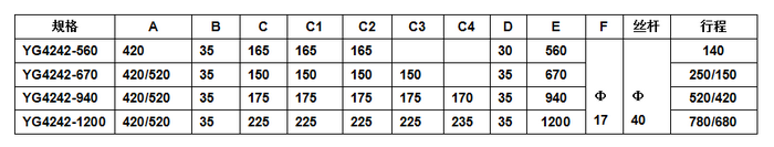 數(shù)控矩形滑臺(tái)420,軸徑為Ф40,螺距為10mm,行程為140-780,使用角接觸配對(duì)軸承和滾珠絲桿組裝,使用高速軸承潤(rùn)滑脂潤(rùn)滑。更多型號(hào)技術(shù)參數(shù)請(qǐng)和我們溝通聯(lián)系,真誠(chéng)期待您的合作!